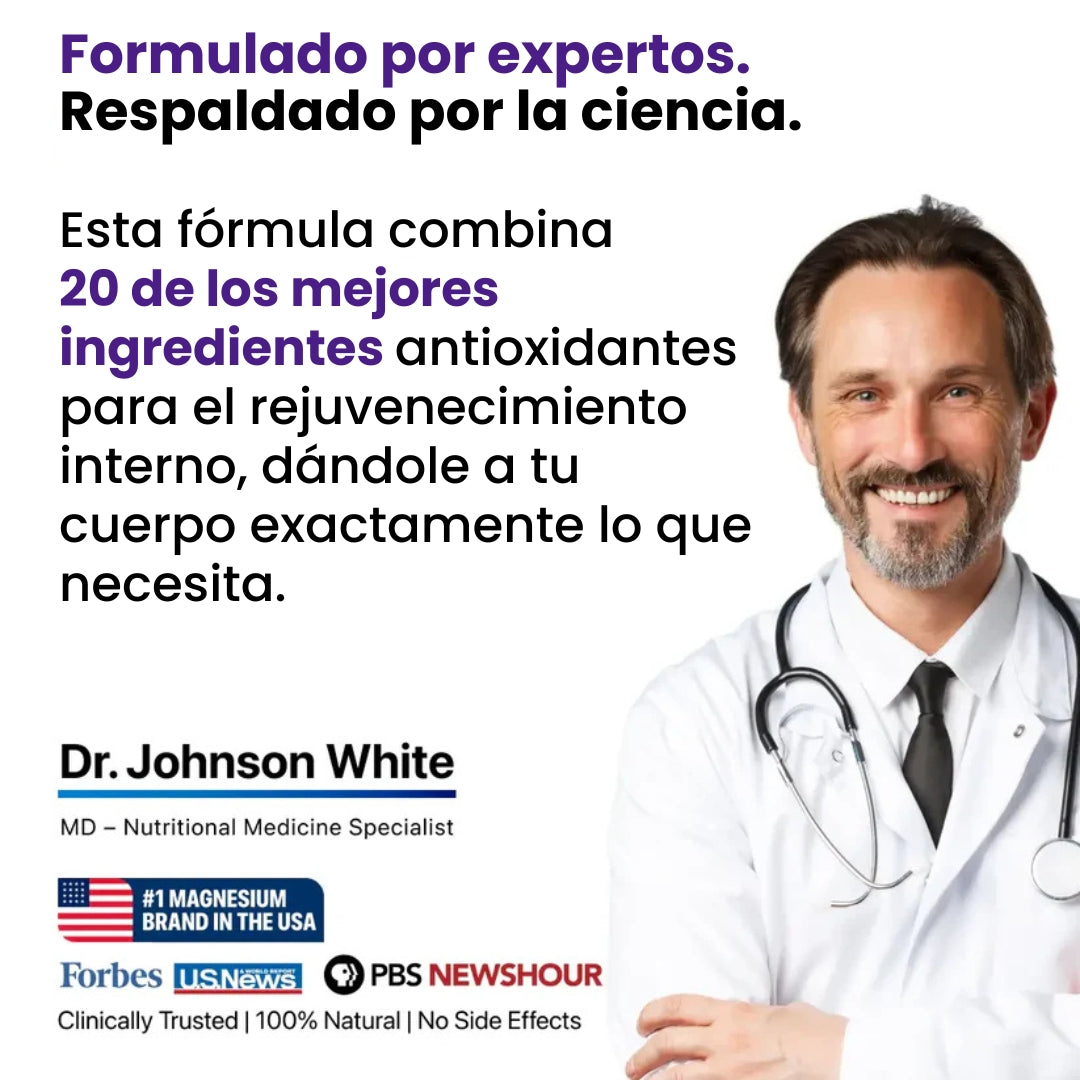 Es la diferencia entre envejecer aceleradamente o mantener una vitalidad extraordinaria, proporcionando protección antioxidante total sin tratamientos costosos o procedimientos invasivos, regenerando tu energía natural desde el nivel celular para que irradies juventud y transformes tu calidad de vida completamente.