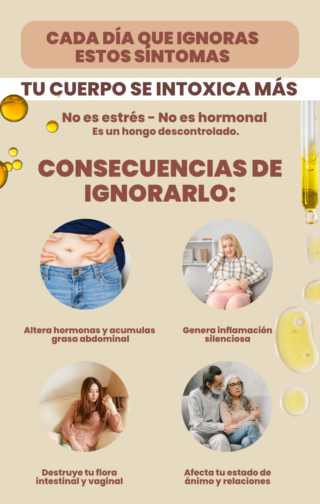 Su fórmula científica no solo elimina la Cándida, sino que restaura tu metabolismo natural quema-grasa y elimina los antojos desde el primer día.