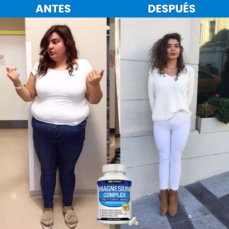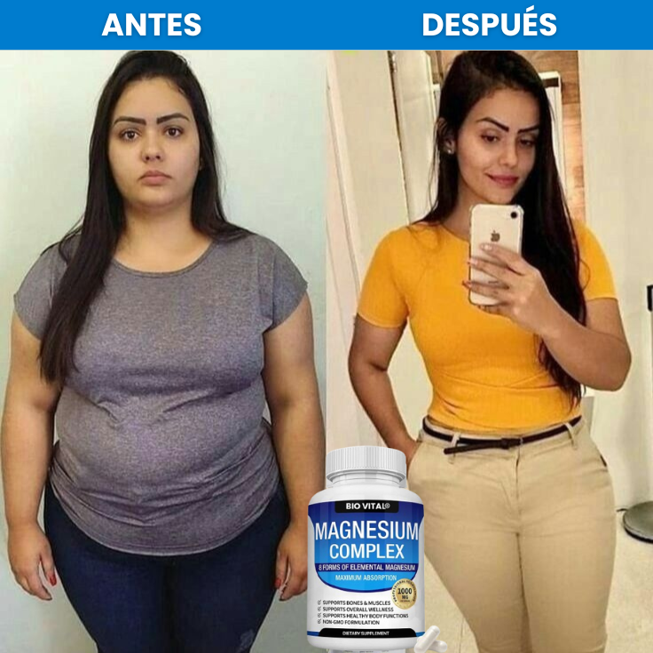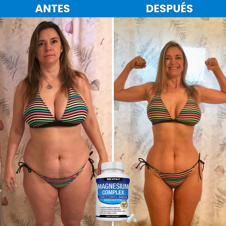 Biovital Magnesium Complex® De Alta Pureza Anti-Edad repone tus reservas de magnesio con una biodisponibilidad del 98%, desbloqueando una transformación visible en 2-3 semanas: